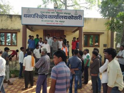 चंद्रपूर: बल्लारपूर तालुक्यातील कोठारी येथे सोमवारी सकाळी बिबट्याच्या हल्ल्यात सदाशिवक चिंचोलकर (५०) हे गंभीररित्या जखमी झाले आहेत. या गावातील ही तिसरी घटना आहे. त्यामुळे संतप्त गावकºयांनी सरपंचांच्या नेतृत्वात वनविभागाच्या कार्यालयाला कुलूप