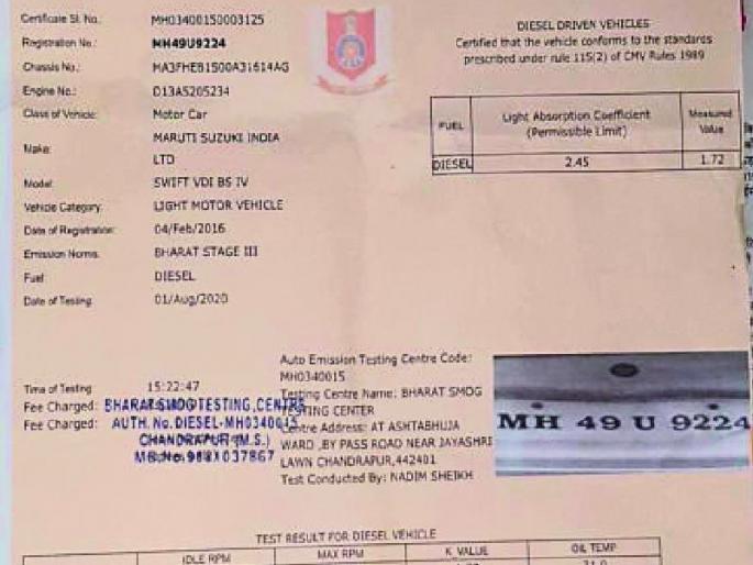 चंद्रपूरचे आमदार किशोर जोरगेवार यांच्या एका कार्यकर्त्याने एमएच ०४ जी ५५०६ क्रमांकाच्या बसच्या मागील बाजूच्या नंबरप्लेटचा फोटो काढून पियुसी काढण्यासाठी शासन मान्यता असलेल्या एका पियुसी केंद्रात नेला. सबंधित पियुसी केंद्रचालकाने वाहन आणले वा नाही चौकशी न करताच त्या व्यक्तीला एमएच ०४ जी ५५०६ क्रमांकाच्या वाहनाची ऑनलाईन पियुसी (पोलुषण अंडर कंत्रोल सर्टिफिकेट) देण्याचा प्रताप केला. ही पियुसी ‘लोकमत’च्या हाती लागली. ‘लोकमत’ने या वाहनाची चौकशी केली असता एमएच ०४ जी ५५०६ क्रमांकाचे वाहन १९ मार्च २०२० पासून चंद्रपूर उपप्रादेशिक परिवहन अधिकारी कार्यालयात जप्त असल्याचे दिसून आले. एखाद्या केंद्रावर हा प्रकार घडू शकतो म्हणून ‘लोकमत’ने याची शहानिशा करण्याकरिता दुसऱ्या पियुसी केंद्रावर रामनगर पोलिसांनी दारूबंदी कायद्यान्वये जप्त केलेल्या एचएच ४९ यु ९२२४ या क्रमांकाच्या वाहनाच्या नंबरप्लेटचा फोटो काढून नेला असता पियुसी केंद्रचालकाने वाहन आणले वा नाही कुठलीही चौकशी न करताच ‘ऑनलाईन पियुसी’ दिली. अन्य केंद्रावर दलालांमार्फत नंबरप्लेटचा फोटो दाखवून आॅनलाईन पियुसी सहज मिळत असल्याचे कळले.