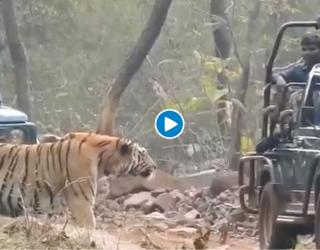 चंद्रपूर : ढाण्या वाघाच्या रस्त्यातच गाडी उभी केली, ताडोबाची दारं कायमची बंद झाली!; व्हिडीओ व्हायरल