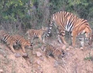 महाराष्ट्र : ताडोबातील वाघीण चार पिल्लांसह पर्यटकांना घालत आहे भुरळ