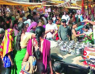 वाण खरेदीसाठी बाजारात उसळली गर्दी