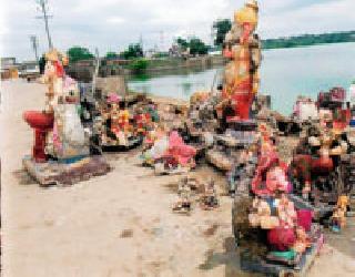 चंद्रपूर : पीओपी मूर्र्तींच्या रंगांमुळे रामाळाचे पाणी प्रदूषित