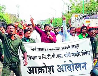 वन्यप्राण्यांच्या बंदोबस्तासाठी मुख्य वनसंरक्षक कार्यालयावर सिटीपीएस कामगारांचा मोर्चा