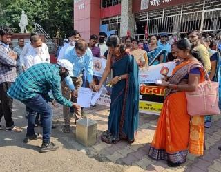 चंद्रपूर : मनपासमोर तीन वॉर्ड, एक प्रभाग विधेयकाची होळी
