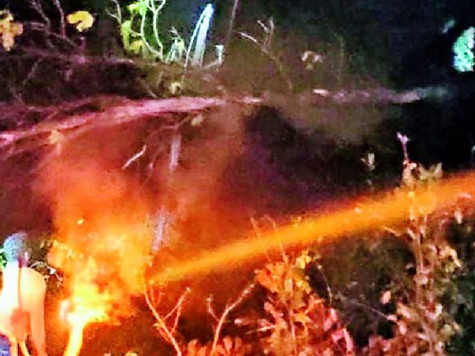 टायर जाळलेल्या उजेडात वीज दुरूस्ती