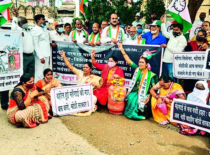 लोकमत न्यूज नेटवर्कचंद्रपूर : केंद्र सरकारच्या सिलिंडर दरवाढीविरूद्ध जिल्हा राष्ट्रवादी ग्रामीण काँग्रेसच्या वतीने शुक्रवारी चंद्रपूरसह जिल्हाभरात निदर्शने करण्यात आली.केंद्र सरकारच्या चुकीच्या धोरणामुळे २५ रूपयांनी सिलिंडर दरवाढ झाली. कोरोनाच्या संकटामुळे जनता आर्थिक अडचणीत मोदी सरकारने हा निर्णय घेतला. ही दरवाढ तात्काळ मागे घेण्याची मागणी जिल्हाध्यक्ष राजेंद्र वैद्य यांनी जटपुरा गेट महात्मा गांधींच्या पुतळ्याजवळ निदर्शने करताना केली. आंदोलनात राष्ट्रवादीचे प्रदेश उपाध्यक्ष दिवाकर गमे, महिला जिहाध्यक्ष बेबी उईके, ज्येष्ठ नेते अॅड. बाबासाहेब वासाडे, शोभाताई पोटदुखे, हिराचंद बोरकुटे, महादेव पीदूरकर , माजी नगराध्यक्ष दीपक जयस्वाल, डी. के. आरिकर, सुनील दहेगावकर, सुनील काळे, प्रियदर्शन इंगळे, पंकज पवार, संजय वैद्य व शेकडो कार्यकर्ते सहभागी झाले होते.
