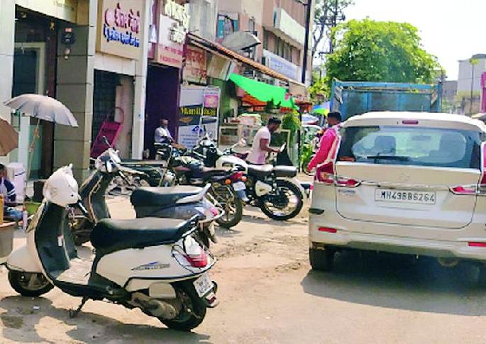 दुकानांसमोर पुन्हा दुचाकीच्या रांगा