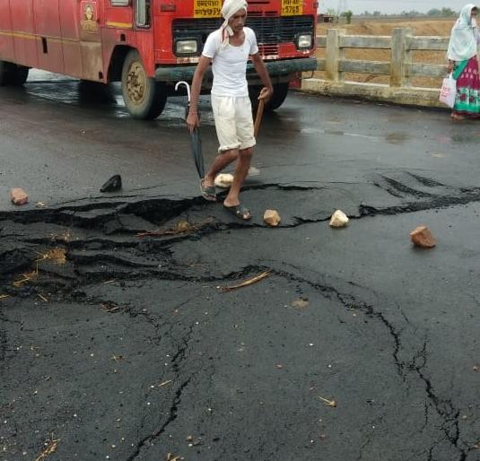 चंद्रपूर जिल्ह्यात पुलावरील रस्ता खचला; वाहतूक कोंडी