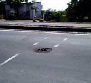 चंद्रपूर-नागपूर मार्गावर घोडपेठजवळ रस्त्याचे बांधकाम करताना वीज खांब हटविण्यात आले. मात्र या खांबाचे अवशेष कायम आहे. त्यामुळे वाहनांना धोका निर्माण झाला आहे.