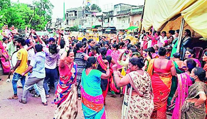 लोकमत न्यूज नेटवर्कचंद्रपूर : थकीत पगार व किमान वेतनाच्या मागणीसाठी मागील २३५ दिवसापासून जिल्हाधिकारी कार्यालयासमोर सुरू असलेल्या डेरा आंदोलनातील कामगारांना न्याय मिळाला आहे. थकीत पगार न्यायालयात जमा करण्याचे तसेच कामगारांना कामावर रुजू करून घेण्याचे औद्योगिक न्यायालयाने आदेश दिले आहे. यामुळे कामगारांनी पेढे वाटून, ढोलताशावर नाचत गुलाल उधळून आनंदोत्सव साजरा केला.चंद्रपूरच्या शासकीय वैद्यकीय महाविद्यालय व रुग्णालयातील ५०० कंत्राटी कामगारांचे १६ महिन्यापासून ७ महिन्याचे वेतन थकीत आहे. त्यामुळे फेब्रुवारी २०२१ पासून कामगारांनी जिल्हाधिकारी कार्यालयासमोर डेरा आंदोलन सुरू केले होते. वैद्यकीय महाविद्यालय व रुग्णालयाने कामगारांचे थकीत पगार देण्याऐवजी त्यांच्या जागेवर नवीन कंत्राटी कामगारांची भरती केली.या विरोधात वैद्यकीय महाविद्यालयात कार्यरत दर्शना झाडे, सविता दुधे, माधुरी खोब्रागडे व निशा हनुमंते या कामगारांनी चंद्रपूरच्या औद्योगिक न्यायालयामध्ये स्थगिती आदेश मिळवण्यासाठी अर्ज केला होता. न्यायालयामध्ये जवळपास तीन महिन्यापासून या अर्जावर नियमित सुनावणी सुरू होती. अखेर ३० सप्टेंबर रोजी न्यायालयाने या प्रकरणांमध्ये स्थगिती दिली. थकीत वेतन एक महिन्याच्या आत न्यायालयात जमा करावे व कामगारांना कामावर घेण्याचा आदेेश न्यायालयाने दिला.