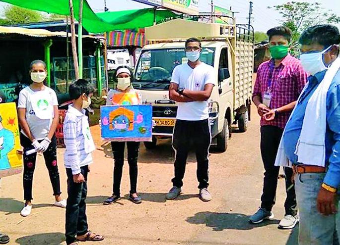 लोकमत न्यूज नेटवर्कघोसरी : कोरोनाच्या दुष्टचक्रात हातावर पोट असलेल्या लोकांचे हाल होत असून रोजगार नसल्याने उपासमारीची परिस्थिती आलेली आहे. अशा परिस्थितीत अनेक समाज घटकांनी पुढाकार घेत मदतीचा हात पुढे केला आहे. पोंभुर्णा तालुक्यातील मौजा घोसरी येथील मिशन मॅथेमॅटीक्सच्या शाळकरी विद्यार्थ्यांनी रस्त्यावर येऊन लोकांना गरीब मजुरांची व्यथा ऐकविली. या अभिनव उपक्रमातून एकाच दिवशी गरीब मजुरांच्या मदतीसाठी १० हजारांचा निधी जमा केला आहे.पोंभुर्णा तालुक्यातील घोसरी येथील अक्षय वाकूडकर यांनी 'मिशन मॅथेमॅटीक्स' च्या माध्यमातून कोरोना संकटात नवनवीन उपक्रम राबवित आहे. त्यांनी गणित विषयाबाबतची विद्यार्थ्यांमध्ये असलेली भीती दूर करण्याकरीता गावागावातील भिंतीवर गणितीय सुत्रे रेखाटले. त्या उपक्रमाचा अनेक विद्यार्थ्यांना लाभ मिळत आहे.'मिशन मॅथेमॅटीक्स' हा उपक्रम अभ्यासापूरता मर्यादित ठेवला नाही. सध्या लॉकडाऊनमुळे मजुरांवर उपासमारीची वेळ आली आहे. त्यांना आर्थिक मदतीची गरज आहे. शासन तर मदत करत आहेच, आपणही करावी, यासाठी विद्यार्थ्यांनी सामाजिक जाणिवेतून रस्त्यावर येत घोसरी व नांदगाव या गावातील लोकांकडून १० हजाराचा मदत निधी संकलित केला. सदर निधी शासनाकडे जमा करण्यात येणार आहे.सोशल डिस्टन्सिंगचे पालन'मिशन मॅथेमॅटीक्स' च्या टीमसोबत अवनी वाकुडकर, पूर्वा भोयर, तक्ष वाकुडकर, पृथ्वी नरूले, समिरा भोयर , स्वरा वाकुडकर ही शाळकरी मुले सामाजिक अंतर पाळत मास्क लावून मोठया उत्साहाने निधी संकलित करीत आहेत.