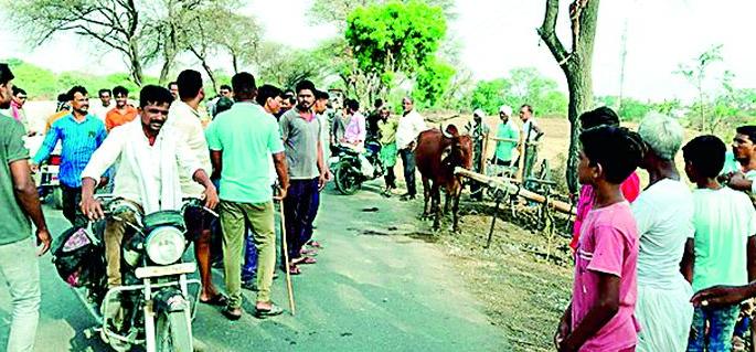 लोकमत न्यूज नेटवर्कगोवरी : राजुरा-गोवरी मार्गावर शनिवारी सकाळच्यासुमारास गोवरी व रामपूर गावाजवळ कोळसा वाहून येणाऱ्या भरधाव ट्रकने बैलांना धडक देऊन गंभीर जखमी केल्याच्या दोन घटना घडल्या. यात गोवरी येथील संतप्त नागरिकांनी पाच तास चक्का जाम आंदोलन करून वाहनांचे आवागमन रोखून धरले. शेतकऱ्यांना आर्थिक रोख मदत मिळाल्यानंतर वाहतूक सुरू करण्यात आली. ओव्हरलोड वाहतूक व रस्त्याच्या दुरवस्थेमुळे अपघाताचे प्रमाण वाढले असल्याचा आरोप नागरिकांनी केला आहे.शनिवारी सकाळी गोवरी येथील शेतकरी विकास आबाजी पिंपळकर यांचा शेतगडी बैलबंडी घेऊन शेताकडे जात असताना समोरून येणाऱ्या भरधाव ट्रकने बैलबंडीला धडक दिली. यात बैलबंडी झाडाला जाऊन धडकली. ट्रकच्या धडकेने बैल अतिशय गंभीररित्या जखमी झाला. त्यानंतर ट्रकचालकाने पळ काढला. नागरिकाने त्या वाहनाचा पाठलाग केला. या घटनेची माहिती मिळताच गावकरी जमा झाले व सकाळी ७ वाजल्यापासून या मार्गावरील वाहतूक रोखून धरली. विकास पिंपळकर, शिवराम पाटील-लांडे, अनिल बोबडे व गावातील शेकडो नागरिक रस्त्यावर उतरले. वारंवार होणाऱ्या अपघातांमुळे शेतकरी व नागरिक त्रस्त आहेत. शेतीच्या हंगामातच बैलाला बैलजोडीला धडक दिल्यामुळे शेतकऱ्यांसमोर आर्थिक प्रश्न निर्माण झाला. त्यानंतर आर्थिक मदत मिळेपर्यंत गावकऱ्यांनी चक्का जाम आंदोलन केले. गावकरी व ट्रान्सपोर्ट मालक मध्यस्थीनंतर विकास आबाजी पिंपळकर यांना ट्रान्सपोर्ट मालकाने ४५ हजारांची रोख मदत केली. त्यानंतर वाहतूक सुरू करण्यात आली. अशीच घटना रामपूर येथे घडली. गोवरी येथील शेतकरी सुधाकर परसूटकर यांनी आपला बैल शनिवार बाजार राजुरा येथे विक्रीकरिता आणताना रामपूरजवळ जे. के .ट्रान्सपोर्टच्या ट्रकने जोरदार धडक दिली. या घटनेत बैल निकामी झाला आहे. शिवसेनीचे बबन उरकुडे यांनी घटनास्थळी पोहोचून परिस्थितीचा आढावा घेतला आणि ट्रान्सपोर्ट मालकाकडून पीडित शेतकऱ्याला ४० हजार रुपयांची मदत मिळवून दिली.