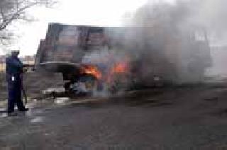 वाहतूक विस्कळीत : वरोरा-वणी मार्गावरील घटनावरोरा : वणी-वरोरा रस्त्यालगतच्या शेंबळ गावाच्या शिवारात नादुरस्त ट्रक मागील काही दिवसांपासून रस्त्याच्या कडेला उभा होता. मात्र रविवारी दुपारी ट्रकला अचानक आग लागली. त्यामुळे वरोरा-वणी मार्गावरील वाहतूक काही तास ठप्प झाली होती.ट्रक नादुरूस्त असल्याने रस्त्याच्या कडेला उभा होता. रविवारी दुपारी १२.३० वाजताच्या सुमारास अचानक ट्रकला आग लागली. जोरदार वारा असल्याने संपूर्ण ट्रकने पेट घेतला. आगीचे लोंढे व धुर मोठ्या प्रमाणात सर्वत्र पसरत होते. त्यामुळे वणी-वरोरा मार्गावरील वाहतून ठप्प झाली होती. वरोरा पोलीस व जी.एम.आर.एम.को व वरोरा नगर पालिकेचे अग्नीशामक दल घटनास्थळी दाखल झाले. त्यानंतर आगीवर नियंत्रण मिळविण्यात आले. अग्निशामक दलाचे योगेश साठोने, डीसीपीओ प्रशांत खापने, फायरमॅन अविनाश गोळघाटे आदींनी यासाठी प्रयत्न केले. (तालुका प्रतिनिधी)६० हजाराची खस जळून खाकवरोरा शहरातील कसमपंजा वॉर्डात रविवारी सायंकाळी ६ वाजताच्या सुमारास अचानक लागलेल्या आगीत अंगणात असलेली ६० हजार रूपयाची कुलरची खस जळून खाक झाली. ही आग पसरत जाऊन शेजारच्या घरांनाही लागल्याने काही जणांच्या घराच्या खिळक्या जळाल्या असून मोठे नुकसान झाले आहे. घटनेनंतर वरोरा नगरपालिकेचे अग्नीशमक दल वेळीच घटनास्थळी पोहोचल्याने मोठा अनर्थ टळला. आगीचे नेमके कारण कळले नसून नबी शेख यांच्या घरी किरायाने राहत असलेल्या भाडेकरूची ती खस होती. मात्र भाडेकरूचे नाव कळू शकले नाही.