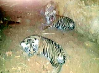 ७२ तासांपासून पिल्लांसह रस्त्यालगतच ठाणतळोधी (बा.) : वन विकास महामंडळ वनपरिक्षेत्राच्या कक्ष क्रमांक ७३ येथील सावंगी फाट्याजवळील तळोधी-बाळापूर रस्त्यावरील नाल्यात पट्टेदार वाघीण आपल्या तीन बछड्यांसहीत ७२ तासांपासून बसून आहे. त्या वाघिणीला पकडण्याचे वन विभागाकडून प्रयत्न सुरू असून गुरूवारी तिला पकडण्यासाठी रेडा ठेवण्यात आला. मात्र रेड्याला ठार मारल्यानंतरही वाघिणीला पकडण्यात यश आलेले नाही. गुरूवारी सायंकाळी पट्टेदार वाघिनीला पकडण्यासाठी वनविकास महामंडळातर्फे कक्ष क्र. ७३ असलेल्या जंगलात घटनास्थळापासून ५० मीटर अंतरावर रेडा ठेवण्यात आला. त्या रेड्यावर वाघिनेने हल्ला केला. मात्र रेड्याच्या ओरडण्यामुळे ती वाघिन पुन्हा बछड्यांकडे परतली. परिसरात वनविकास महामंडळातर्फे पानवटे तयार करण्यात आले असून ११ कॅमेरे सुद्धा लावण्यात आले आहेत. गेल्या तीन दिवसांपासून वाघिनीने पिल्लासह ठाण मांडून बसल्याने तळोधी रस्त्यावरची वाहतूक बंद करण्यात आली आहे. त्यामुळे या मार्गाने जाणाऱ्या दुचाकी, चारचाकी, लग्न वऱ्हाड्यांना सावंगी मार्ग तळोधी (बा.) ला जावे लागत आहे. गेल्या तीन दिवसांपासून वाघिनीला पकडण्याचे प्रयत्न सुरू असून नागरिकांमध्ये भितीचे वातावरण आहे. त्यामुळे वाघिनीला पकडण्यासाठी पिंजरे लावण्यात यावे, अशी मागणी होत आहे. वनविकास महामंडळाचे अधिकारी घटनास्थळावर नजर ठेवून आहेत. (वार्ताहर)