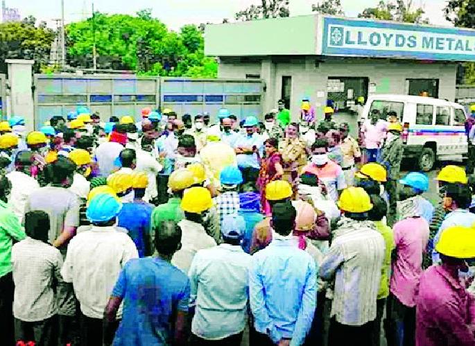 लॉयड मेटल कारखान्यासमोर कामगारांचे ठिय्या आंदोलन