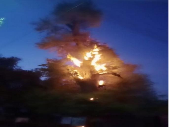 खुलताबाद ( औरंगाबाद ) : तालुक्यातील कसाबखेडा येथील मुख्य बाजारपेठेत असलेल्या महाकाय चिंचेच्या झाडाने मध्यरात्री पेट घेतला. बुधवारी सायंकाळी चिंचेच्या झाडावरील मधमाशांचे मोहोळ उठविण्यासाठी काही ग्रामस्थांनी गोवऱ्या पेटवल्या होत्या. तेव्हा आतून पोकळ झालेल्या झाडाने पेट घेतला. यावेळी ग्रामस्थांनी प्रयत्न करून आग आटोक्यात आणली होती. मात्र, यानंतर पुन्हा मध्यरात्री आग भडकून हे महाकाय झाड सकाळपर्यंत जळत होते. सकाळी औरंगाबाद अग्निशमन दलाने प्रयत्न करून आग आटोक्यात आणली.