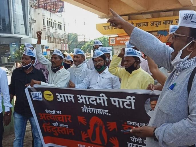 औरंगाबाद : आम आदमी पार्टी औरंगाबादच्या वतीने शनिवारी क्रांती चौक येथे हाथरस उत्तर प्रदेश येथील घटनेचा निषेध करण्यात आला. तसेच पिडितेला न्याय न देता पिडितेच्या पालकांचे नार्को टेस्ट करणार असल्याची घोषणा योगी सरकार करत आहे, याचा विरोध म्हणून पार्टीच्या वतीने क्रांती चौक येथे निदर्शने करण्यात आली.