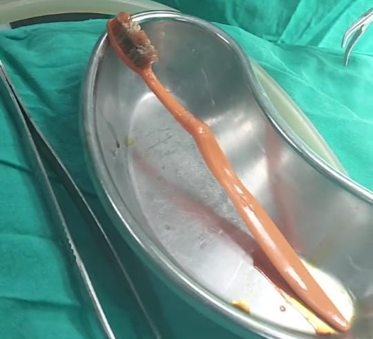 यापूर्वी काढला चमचाहीमनोरुग्ण अशाप्रकारे वस्तू गिळत असतात. एका रुग्णाच्या पोटातून यापूर्वी चमचा काढला होता. या रुग्णाने ब्रश का गिळला, हे समजू शकले नाही, असे डॉ. जुनेद एम. शेख म्हणाले.