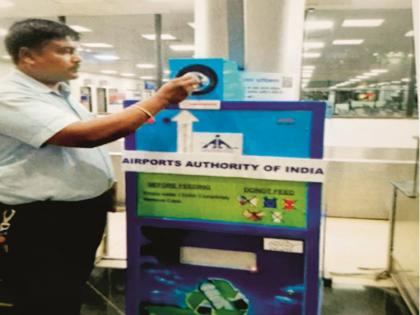 रेल्वेस्टेशनवर काही दिवसांपूर्वीच पिण्याच्या पाण्याच्या प्लास्टिक च्या बाटल्या चिरडून टाक णारे यंत्र (बॉटल क्र शिंग मशीन) बसविण्यात आले आहे. अगदी असेच यंत्र विमानतळावर लावण्यात आलेले आहे. त्यातून टाकाऊ बाटल्यांची तुकडे केली जात आहेत.