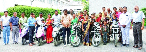 लोकमत न्यूज नेटवर्कऔरंगाबाद : बहुचर्चित ‘लोकमत विंटर धमाका’तील विजेत्यांना एका भव्य कार्यक्रमात ‘लोकमत भवन’ परिसरात मान्यवरांच्या हस्ते बक्षीस वाटप करण्यात आले.औरंगाबाद-जालना-बीड जिल्ह्यांतून प्राप्त हजारो प्रवेशिकांमधून भाग्यवान विजेत्यांची लकी ड्रॉद्वारे निवड करण्यात आली होती. ‘लोकमत’तर्फे वाचकांसाठी नेहमीच विविध उपक्रम, बक्षीस योजना राबविण्यात येतात. अशीच एक भव्य बक्षीस योजना ‘लोकमत विंटर धमाका’ राबविण्यात आली.१ डिसेंबर २०१७ ते ११ मार्च २०१८ या कालावधीत घेण्यात आलेल्या या योजनेत १०० कूपन्स प्रकाशित करण्यात आली होती. त्यापैकी ७५ कूपन्स प्रवेशिकेवर चिकटवून हजारो वाचकांनी या योजनेत सहभाग नोंदविला.हजारो प्रवेशिकांमधून लकी ड्रॉद्वारे विजेत्यांना आज औरंगाबाद जिल्हा व्यापारी महासंघाचे अध्यक्ष जगन्नाथ काळे, महेश आॅटोचे संचालक अजय गांधी, भाग्यविजयचे विजय चाटोरीकर, सामाजिक कार्यकर्ते नरेश भालेराव आदी मान्यवरांच्या हस्ते प्रथम बक्षीस हीरो मोटारसायकल, द्वितीय बक्षीस टीव्हीएस स्कूटी पेप, तृतीय बक्षीस सुदर्शन सोलार वॉटर हिटर, चतुर्थ बक्षीस गोवा टूर, पाचवे बक्षीस इलेक्ट्रिकल गिझर व सहावे बक्षीस इंडक्शन कुकर देण्यात आले.याप्रसंगी ‘लोकमत’च्या वतीने मान्यवरांचे स्वागत ‘लोकमत’चे सहायक उपाध्यक्ष संदीप विश्नोई, संपादक सुधीर महाजन, प्रमोद मुसळे यांच्या हस्ते करण्यात आले.