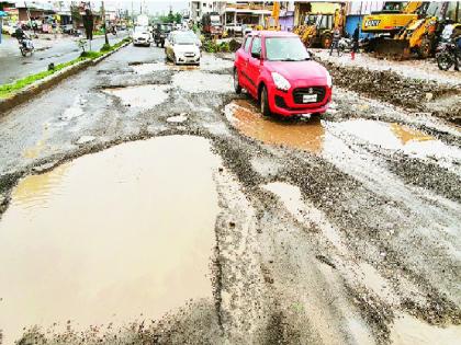 रेल्वेस्टेशन, पैठण रोडवरील महानुभाव आश्रम चौकापासून ते झाल्टा फाट्यापर्यंत अतिजिकिरीने वाहने चालवावी लागत आहेत. पावसाच्या पाण्यात दडलेला खड्डा वाहनधारकांसाठी अनभिज्ञ असल्याने वाहन त्यात आदळून अपघातजन्य स्थितीतून सावरताना चालकांना मोठी कसरत करावी लागते.