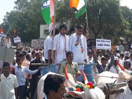 गंगाखेड - शहरात काँग्रेसच्यावतीने धिक्कार मोर्चाला सुरुवात,मोर्च्यात घोडा,बैलगाडीसह गाढवांचाही सहभाग.
