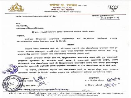 यासंबंधीचा प्रस्ताव शुक्रवारी भाजपने महापौरांकडे सादर केला. शिवसेनेने काँग्रेस-राष्ट्रवादी काँग्रेससोबत महाविकास आघाडी स्थापन करून मुख्यमंत्रीपद मिळविले. महाआघाडीचे सरकार स्थापन झाल्यापासून भाजप सेनेवर कुरघोडी करण्याची एकही संधी सोडायला तयार नाही. औरंगाबाद महापालिकेत युती तुटल्याची घोषणा भाजपने केली. त्यानंतर उपमहापौर विजय औताडे यांनी राजीनामा दिला. स्थायी समिती सभापती, वॉर्ड सभापती आदी महत्त्वाची पदे आजही भाजपच्या ताब्यात आहेत.
