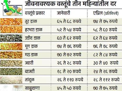 देशात सध्या लोकसभा निवडणुकीच्या प्रचाराचा ज्वर चढला आहे. सरकार व प्रशासन निवडणुकीच्या कामात गुंतले आहे. यामुळे महागाई नियंत्रणात आणण्यात कुणाकडे वेळ नाही. परिणामी बाजारात जीवनावश्यक वस्तूंसह इतर वस्तूंची दरवाढ सुरूच आहे. मागील तीन महिन्यांत तूर डाळीच्या भावात किलोमागे ९ रुपयांनी वाढ होऊन ७४ ते ७५ रुपये प्रतिकिलो, हरभरा डाळ ६ ते ८ रुपयांनी वधारून ५८ ते ६० रुपये, मठ डाळ १२ रुपयांनी वाढून ८२ ते ८४ रुपये, मूग व उडीद डाळीत २ रुपयांनी वाढ होऊन अनुक्रमे ७६ ते ७८ रुपये तर ६२ ते ६४ रुपये प्रतिकिलो विक्री होत आहे. जानेवारीत २६ ते २८ रुपये विक्री होणारी ज्वारी सध्या ३० ते ४० रुपये प्रतिकिलोने मिळत आहे. तर १८ ते २० रुपयांनी मिळणारी बाजरी २४ ते २६ रुपये किलोने विकत आहे.