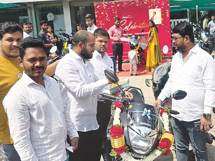 हजार कारची विक्रीबाजारात कारला मागणी प्रचंड असली तरी, सेमी-कंडक्टर आणि इतर स्पेअर पार्ट्सच्या तुटवड्यामुळे कार उत्पादनावर परिणाम झाला आहे. यामुळे खरेदीदारांना नवीन कारसाठी महिना ते दीड महिन्याची प्रतीक्षा करावी लागत आहे. काही मॉडेल्ससाठी हे वेटिंग ३ महिन्यांपर्यंत देखील जात आहे. महिनाभरापूर्वी ज्यांनी बुकिंग केली त्यांना गुढीपाडव्याच्या मुहूर्तावर कारच्या चाव्या आज देण्यात आल्या. आज १ हजार कारची विक्री झाली आहे. इंधनाचे वाढते दर आणि भविष्यातील तंत्रज्ञान म्हणून ग्राहक ई-कारकडे वळू लागले आहेत. ५० पेक्षा जास्त ई-कार विक्री झाल्याची माहिती वितरक सचिन मुळे यांनी दिली.