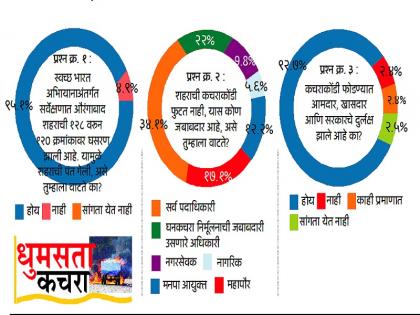 शहराची कचराकोंडी फुटत नाही, यास जबाबदार कोण, या प्रश्नावर ३४.१ टक्के नागरिकांनी मनपाच्या सर्व पदाधिकाऱ्यांस जबाबदार धरले आहे. २२ टक्के नागरिकांनी घन कचरा निर्मूलनाची जबाबदारी असणाऱ्या अधिकाऱ्यांस जबाबदार धरले, १७. १ टक्के नागरिकांनी महापौर, तर १२.२ टक्के नागरिकांनी मनपा आयुक्त जबाबदार असल्याचे मत नोंदवले. ९.८ टक्के नागरिकांनी नगरसेवक, तर ४.९ टक्के नागरिकांनी यास शहरवासीय स्वत: जबाबदार असल्याचे म्हटले आहे.
