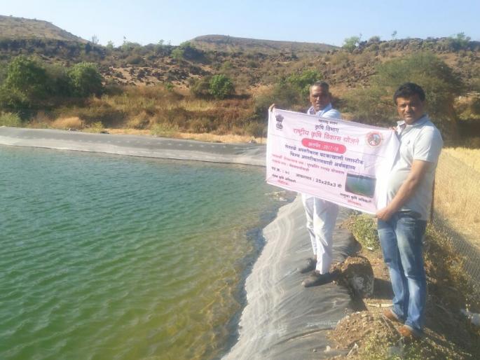लोकमत न्यूज नेटवर्ककचनेर : कृषी विभागामार्फत खोडेगाव व बेंबळ्याची वाडी येथे ‘मागेल त्याला शेततळे’ योजनेअंतर्गत २०१६-१७ व २०१७-१८ या वर्षात १०० शेततळे पूर्ण झाले असून ४५ शेतकऱ्यांना राष्ट्रीय कृषी विकास योजनेअंतर्गत अस्तरीकरणाचा लाभ देण्यात आला. प्रथमच शेततळ्यांची शतकपूर्ती झाल्याने या भागातील शेतकºयांना मोठा दिलासा मिळाला असून या तळ्यांमुळे परिसर पाणीदार झाला असून या भागातील २०० हेक्टर क्षेत्र बागायत झाले आहे.खोडेगाव व बेंबळ्याची वाडी गावाचे भौगोलिक क्षेत्र १८४१ हेक्टर असून वहितीखालील क्षेत्र १४२७ हेक्टर आहे. सदरील गावातील विहिरीची पाण्याची पातळी २०१६ -१७ या वर्षात खालावलेली होती. बरेच शेतीक्षेत्र कोरडवाहू होते. परंतु कृषी सहायक संजय पवार हे रुजू होताच त्यांनी या गावांचे रुपडेच पालटून टाकले.सदरील शेततळे पूर्ण करण्यासाठी तालुका कृषी अधिकारी अशोक कोंडे, मंडळ कृषी अधिकारी रोहिदास राठोड, कृषी पर्यवेक्षक हरिभाऊ कातोरे यांनी वेळोवेळी मार्गदर्शन केले. जि.प. सदस्य प्रकाश चांगुलपाय, पंचायत समिती सदस्या शर्मिला कल्याण गायकवाड, सरपंच अर्जुन ढगे, उपसरपंच पूनम नागलोत, ग्रा.पं. सदस्य यांनी मोलाचे योगदान दिले. तसेच कल्याण गायकवाड व प्रगतीशील शेतकरी अनिल चौधरी, माजी सरपंच बालाजी हुलसार यांनी सहकार्य केल्याने शेततळ्यांची ही शतकपूर्ती होऊ शकली.टँकरमुक्तीसाठीही हातभारकृषी सहायक संजय पवार यांनी गावातील शेतकºयांना मार्गदर्शन करून ‘मागेल त्याला शेततळे’योजनेचे महत्त्व पटवून दिले. यानंतर शेततळ्यांच्या कामांचा धडाका सुरु झाला.च्पाहता पाहता १०० शेततळे पूर्ण झाले आणि सदरील गावातील २०० हेक्टर क्षेत्र बागायती होऊन टँकरमुक्त होण्यास मदत झाली. तसेच भाजीपाला व फळबागेखालील क्षेत्रातही वाढ होऊन शेतकºयांचा आर्थिक स्तर उंचावला. शिवाय गाव दुष्काळमुक्त होण्यास मदत झाली.मी माझी जुनी डाळींबाची बाग पाण्याअभावी तोडून टाकणार होतो, परंतु आमच्या सजेतील कृषी सहायक संजय पवार यांच्या मार्गदर्शनामुळे मला शेततळे व अस्तरीकरणाचा लाभ मिळाला. यामुळे माझी फळबाग जगली तसेच नवीन भाजीपाला लागवड करून उदरनिर्वाहाचे साधन मिळाले.-बाळासाहेब डिघुळे, शेतकरी, खोडेगाव