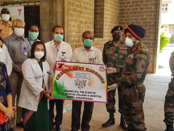 औरंगाबाद : शासकीय वैद्यकीय महाविद्यालय व रुग्णालयात (घाटी) येथील कोरोना योद्ध्यांना लष्कराच्या जवानांकडून मानवंदना देण्यात आली.