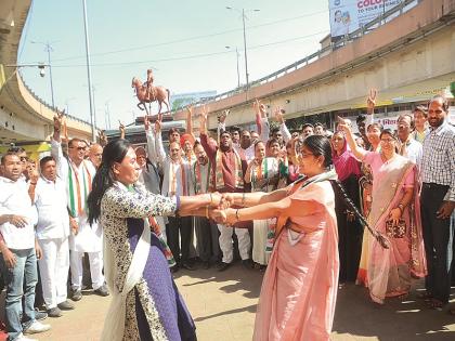 क्रांतीचौकात सरोज मसलगे पाटील आणि रेखा जैस्वाल या महिला कार्यक़र्त्यांनी फुगडी खेळली.कार्यकर्त्यांनी रस्यावरील नागरिकांना मिठाईचे वाटप केले. कॅनॉट गार्डन, जयभवानीनगर आदी भागातही कार्यकर्त्यानी जोरदार विजयाचा आनंद साजरा केला.