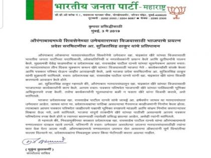 दानवेंनी युतीचा धर्म पाळला नाही, जावई हर्षवर्धन जाधवांना मदत केल्याची तक्रार