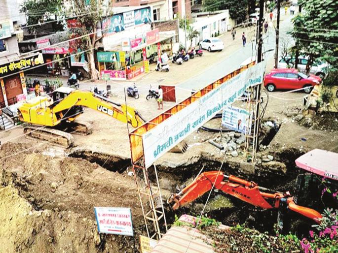 १० फुटांपर्यंत खोदकाम करून मोठी जलवाहिनी टाकण्यात आली. पण, तेथील हायहोल्टेज लाइन, दोन लहान जलवाहिन्या उघड्या पडल्या आहेत. खोदकामात ड्रेनेजलाइन फुटल्याने खड्ड्यात दुर्गंधीयुक्त पाणी साठले आहे. एन ३ येथील किटली गार्डन परिसरातील पाण्याच्या टाकीपर्यंत मोठी पाइपलाइन नेण्याचे काम बाकी आहे. जलवाहिनीसाठी आणखी ५ फूट खोल खड्डा खोदायचा आहे. मात्र, रस्त्यात खूप अडथळे आहेत. अनेक एजन्सी या कामात असून त्यांच्यात ताळमेळ नसल्याने काम बंद पडल्याची माहिती अधिकाऱ्यांनी दिली.