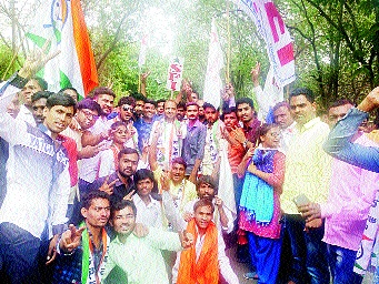 राष्ट्रवादी विद्यार्थी काँग्रेस आणि एसएफआयच्या विजयानंतर दोन्ही संघटनांच्या पदाधिकाºयांनी प्रशासकीय इमारत ते डॉ. बाबासाहेब आंबेडकर यांच्या पूर्णाकृती पुतळ्यापर्यंत जोरदार मिरवणूक काढली. या मिरवणुकीत राष्ट्रवादी काँग्रेसचे पदाधिकारी अभिजित देशमुख, युवक शहराध्यक्ष दत्ता भांगे, विद्यार्थी काँग्रेसचे मयूर सोनवणे, अमोल दांडगे, एसएफआयचे राज्य उपाध्यक्ष सुनील राठोड, नितीन वाव्हुळे, दीपक बहीर, यशोदीप पाटील, लोकेश कांबळे, सत्यजित मस्के, अभिमान भोसले, प्राजक्ता शेटे, प्रदीप सुरवसे, मनीषा मगरे यांच्यासह विद्यार्थी मोठ्या संख्येने सहभागी झाले होते.