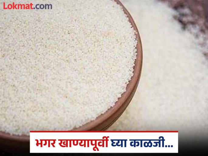 भगर खाण्यापूर्वी व खाताना कोणती काळजी...शक्यतो पाकीटबंद भगर घ्या. सुटी भगर घेऊ नका. भगर घेताना पाकिटावरील पॅकिंग व अंतिम वापर तारीख तपासा. भगर साठवताना ती कोरड्या ठिकाणी, झाकणबंद डब्यात ठेवा. जेणेकरून वातावरणातील ओलाव्यामुळे बुरशीची वाढ होणार नाही. जास्त दिवस साठवलेली भगर व पीठ खाऊ नका. शक्यतो भगरीचे पीठ विकत आणू नका. पिठाला बुरशीची लागण होण्याची शक्यता जास्त असते. भगरीच्या दशम्या, भाकरीऐवजी खिचडी खावी. भगरीचे पीठ आवश्यक तेवढेच दळून घ्या. बाहेरून दळून आणण्यापेक्षा घरीच दळा. दोन ते तीन दिवस सलग उपवासाच्या पदार्थांचे सेवन केल्यास ॲसिडिटी होऊन उलटी, मळमळ व पोटाचे त्रास होऊ शकतात.