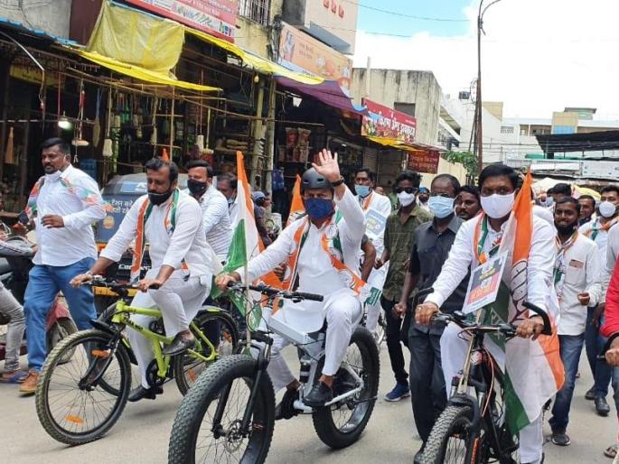 तत्पूर्वी त्यांच्या नेतृत्वाखाली गांधी पुतळा, शहागंज येथून सायकल रॅली काढण्यात आली. स्वतः देशमुख पदाधिकाऱ्यांसह सायकलवर बसून या रॅलीव्दारे जिल्हाधिकारी कार्यालयात आले. तर सय्यद अक्रम व खालिद पठाण हे हातात तिरंगा ध्वज फडकवत, उंटावर बसून रॅलीत सहभागी झाले. पत्रकारांशी बोलताना देशमुख यांनी आरोप केला की, केंद्र सरकार पेट्रोल- डिझेल व जीवनावश्यक वस्तूंची भाववाढ करुन सर्वसामान्य लोकांच्या खिशाला कात्री लावत आहे. याबद्दलचा वाढता रोष लक्षात घेता २०२४ साली देशात काँग्रेसची सत्ता आल्याशिवाय राहणार नाही. छगन भुजबळ व देवेंद्र फडणवीस यांची ओबीसींच्या राजकीय आरक्षणाच्या प्रश्नावर बैठक झाली, ही चांगली गोष्ट होय. यातून काही चांगले निष्पन्न होईल अशी अपेक्षा करु या, अशी प्रतिक्रिया देशमुख यांनी व्यक्त केली.
