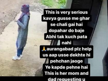 औरंगाबाद : 'आमची मदत करा. काव्या ला सर्व जण ओळखतात. तिचा मोबाईल पण आमच्या जवळ आहे. तिच्याकडे केवळ दोनच हजार रुपये आहे. शुक्रवारी दुपारीपासून काव्या घरी परतली नाही. तिच्याबद्दल माहिती मिळाली तर आम्हाला छावणी पोलिसांना कळवा.', अशी आर्जव करणारा व्हिडीओ सोशल मीडियावर प्रसिद्ध युट्युबर बिनधास्त काव्याच्या आईवडिलांनी शेअर केला आहे.
