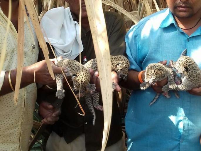 उसाच्या फडात सापडली बिबट्याची चार पिले!