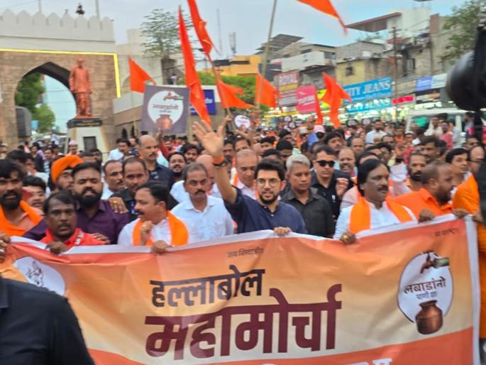 मागील महिनाभरापासून शहर पाणीप्रश्नावर ठाकरेसेनेचे लबाडांनो पाणी द्या हे आंदोलन सुरू आहे. शहरातील विविध भागात कार्यकर्त्यांनी आंदोलन करत पाणी प्रश्नावर संताप व्यक्त केला. या आंदोलनांचा समारोप आदित्य ठाकरे यांच्या नेतृत्वाखाली आज महापालिकेवर हल्लाबोल माेर्चा नेऊन होत आहे. क्रांती चौकातून सायंकाळी मोर्चास सुरुवात झाली. लबाडांनो पाणी द्या, असे बॅनर हातात घेऊन काही आंदोलक सहभागी होते. माजी मंत्री आदित्य ठाकरे, विधान परिषद विरोधीपक्ष नेते अंबादास दानवे, माजी खासदार चंद्रकांत खैरे यांच्यासह आंदोलक जोरदार घोषणाबाजी करत महापालिकेकडे रवाना झाले.