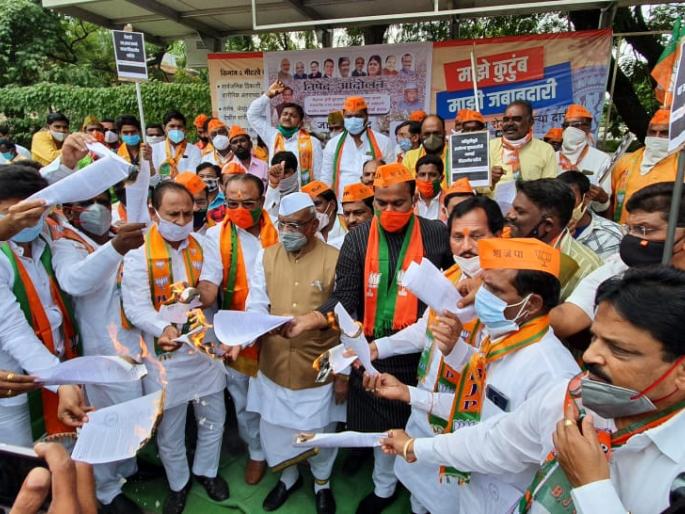 औरंगाबाद : केंद्र शासनाने संसदेत पारित केलेल्या कृषी विधेयकाला राज्यातील महाविकास आघाडी सरकारने स्थगिती दिल्याच्या विरोधात भारतीय जनता पार्टीच्या लोकप्रतिनिधी, पदाधिकारी, कार्यकर्त्यांनी बुधवारी जिल्हाधिकारी कार्यालयासमोर आंदोलन करत शासनाने कृषी विधेयकाच्या स्थगितीसाठी काढलेल्या अध्यादेशाची होळी केली.