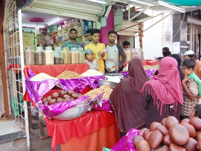 वैजापूर : येथे ईदचा बाजार सजला असून खरेदीसाठी मुस्लिम बांधवांची झुंबड उडाली आहे. सुकामेवा, अत्तर, कपडे यासह अन्य वस्तूंच्या खरेदीसाठी गर्दी होत आहे. गतवर्षाच्या तुलनेत यंदा १८ टक्के जीएसटीमुळे तब्बल १५० ते २०० रूपयांनी सुकामेवा महागला आहे.शहरात ईदच्या पार्श्वभूमीवर भरलेल्या बाजारात सध्या १५० ते २०० स्टॉलधारक आहेत़ यामध्ये आवश्यक सर्व वस्तूंचा समावेश आहे. खरेदीसाठी शहर व तालुक्यातून दररोज मोठी गर्दी होत आहे. गांधी मैदान, टिळक रस्त्यावरील बाजार फुलला आहे. मात्र, शिरखुर्मा तयार करण्यासाठी आवश्यक असलेल्या ड्रायफ्रूटला यंदाच्या वर्षी दरवाढीमुळे मागणी घटली आहे, अशी माहिती व्यापारी जुबेर वाजेद पठाण यांनी दिली.रमजान महिन्यात उपवासानंतर खाण्यासाठी आवश्यक असलेले खजूर विक्री करणारे स्टॉलही बाजारात आहेत. १०० रुपयांपासून ३ हजार रुपये किलोपर्यंतचे खजूर विक्रीसाठी आहेत. मरियम, सुल्तान, रतन, मोजरब, केमिया, फरीद, कलमी, कफकफ आदी विविध प्रकारचे खजूर बाजारात आहेत. आजवा खजूर २८०० ते ३००० रुपये किलो आहेत. खजुराला यंदा मोठी मागणी आहे. वैजापुरात अत्तराला दरवर्षी मोठी मागणी असते. ग्रीन मुश्क, चॅलेंज, ओन्ली वन, गुलनाज, गुलमोहर, डी लव्ह, फिरदोस, असिल, रॉयल प्रोफेसी, तुफान, हुदा आदी १०० प्रकारचे अत्तर सध्या बाजारात विक्रीसाठी दाखल झाले आहेत.२० रुपयांपासून २ हजार रुपयांपर्यंत अत्तराची किंमत असून, रमजानमध्ये याला खूप मान असतो.अत्तराचा साबण प्रथमच बाजारातयंदाच्या वर्षी प्रथमच अत्तराचा साबण बाजारात दाखल झाला आहे. ईदमध्ये महिलांना सजण्यासाठी आवश्यक असलेली ज्वेलरीची विक्री करण्यासाठी गांधी मैदानात अनेक स्टॉल सजले आहेत. कानातील विविध फुले, गळ्यातील आकर्षक दागिने, हातातील बांगड्या, नेलपेंट, मेहंदी विक्री करणारे स्टॉलही लावण्यात आले आहेत. नर्गिस, कॅटरिना, करिना, प्रेम दुल्हन, हिना आदी विविध प्रकारच्या मेहंदी विक्रीसाठी ठेवण्यात आल्या आहेत.लहान मुलांपासून मोठ्या पुरुषांपर्यंत सर्वांसाठी बेल्ट,पॉकेट, गॉगल्स,चप्पल, बूट, सँडल विक्रीचे स्टॉल लागले आहेत. महिलांचे खास आकर्षण असलेल्या बांगड्या खरेदीसाठी गर्दी होत असून यामध्ये जयपूर आणि हैद्राबादी बांगड्यांना मोठी मागणी आहे.चटोरी गल्लीत खवय्यांची गर्दीरमजान ईदनिमित्त दरवर्षी आपली वेगळी ओळख निर्माण करणाऱ्या शहरातील चटोरी गल्लीत यंदाही शेरूभार्इंनी रगड्याची भेट देऊन ग्राहकांना समाधानी केले आहे. टिकिया पाव, समोसे, भजे आदींसह विविध प्रकारचा खिचडा तयार करणारे पदार्थ लोकप्रिय ठरले आहेत. यंदा रबडीबरोबर दाल वडे व पकोडे तयार केले आहेत. खास रमजाननिमित्त खरेदी करण्यासाठी येथे लोकांची मोठी गर्दी होत आहे.