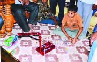 नामदेव बिचेवार, बारड ग्रामीण भागातील बालसंशोधकाने कुशाग्र बुद्धी व कल्पकतेच्या बळावर टाकाऊ पदार्थापासून हायड्रॉलीक जेसीबी मशीन तयार केले आहे़ ११ वर्षीय इंद्रजितने तयार केलेले यंत्र पाहण्यासाठी गर्दी होत आहे़मुदखेड तालुक्यातील बारडपासून सहा किमी अंतरावर डोंगरगाव हे गाव आहे़ जेमतेम हजार लोकसंख्या असलेल्या गावात प्राथमिक शिक्षणाची सुविधा आहे़ येथील इंद्रजित कैलास व्यवहारे हा नांदेड येथील के़ एम़ पाटील विद्यालयात सहाव्या वर्गात शिकत आहे़ बालपणापासून त्यास विविध वस्तू तयार करण्याचा छंद आहे़ उन्हाळी सुट्यात तो गावाकडे आला होता़ गावात रस्त्याचे काम जेसीबी मशीनद्वारे करण्यात येत होते़ तब्बल महिनाभर हे काम चालले़ जेसीबी मशीन कसे करते? असा प्रश्न बालसंशोधक इंद्रजितच्या मनात निर्माण झाला़ यातून संशोधनाला चालना मिळाली़ जेसीबीच्या विविध भागाचे अवलोकन केल्यावर ते हायड्रोलीक पॉवरवर चालत असल्याचे त्याच्या निदर्शनास आले़ हे यंत्र घरबसल्या बनवण्याचा आराखडा तयार करुन त्याने प्रत्यक्ष साहित्य जुळवण्यास सुरुवात केली़ एअर प्रेशर देण्यासाठी जनावरांसाठी वापरण्यात येणारे इंजेक्शनचे सिरींज, स्लाईनच्या नळ्यात पाणी भरुन इंजेक्शनद्वारे हवेचा दाब निर्माण करण्याची संकल्पना त्याने प्रत्यक्ष अंमलात आणली़ जोडणीसाठी प्लायवूडची पाटी तसेच वजन उचलण्यासाठी तार व खिळे वापरुन नांगर तयार केला़ अतिशय कल्पकतेने त्यावर रंगीत पेपरचे आच्छादन केले़ हे यंंत्र पुढे नेण्यासाठी व मागे आणण्यासाठी विविध १६ सिरींजची जुळवणी इंद्रजितने केली़ सदरील जेसीबी लहान स्वरुपाचे ओझे एका जागेवरुन दुसऱ्या जागी हलविण्याचे यशस्वी प्रात्यक्षिक त्याने ग्रामस्थांना करुन दाखविले़ घरात कुठलीही शैक्षणिक पार्श्वभूमी नसताना ११ वर्षीय इंद्रजितची कल्पकता पाहून गावातील नागरिक अवाक् झाले़ याची चर्चा परिसरातील गावातही झाली़ एका शेतकऱ्याच्या मुलाने जोपासलेल्या संशोधकवृत्तीला योग्य चालना मिळाल्यास भावी वैज्ञानिक घडल्याशिवाय राहणार नाही़ जिल्हास्तरीय विज्ञान प्रदर्शनात सदर मॉडेल ठेवून आणखी काही इलेक्ट्रॉनिक वस्तू तयार करण्याचा मानस इंद्रजितने व्यक्त केला़ जेसीबी टाकाऊ साहित्यापासून तयार केली असून त्यासाठी केवळ १५ रुपये खर्च आला़ शास्त्रज्ञ बनून देशसेवा करण्याची इच्छा त्याने व्यक्त केली़