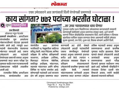 राज्यातील विविध आयटीआय संस्था, कार्यालयातील आठ संवर्गातील ७७२ जागांच्या भरतीसाठी १६ फेब्रुवारी रोजी जाहिरात प्रसिद्ध केली. त्यात आठ पदांचा समावेश आहे. शेकडो उमेदवारांनी आठही पदांसाठीची एकाच कंपनीकडून वेगवेगळी बनावट अनुभव प्रमाणपत्रे हस्तगत करीत अर्ज केल्याचे परीक्षेनंतर जाहीर झालेल्या प्राथमिक गुणवत्ता यादीतून उघडकीस आले होते. याविषयी ' काय सांगता? ७७२ पदांच्या भरतीत घोटाळा! ' या मथळ्याखाली ' लोकमत ' ने शनिवारच्या अंकात वृत्त प्रकाशित केले.