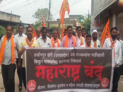 औरंगाबाद : लखीमपूर खेरी येथे घडलेल्या घटनेच्या निषेधार्थ आज महाविकास आघाडीने महाराष्ट्र बंदची (Maharashtra Bandh) हाक देण्यात आली आहे( Maharashtra Bandh in Aurangabad) . शिवसेना(Shivsena), काँग्रेस(Congress), राष्ट्रवादी काँग्रेस(NCP) यांनी एकत्र येत शहरातील मुख्य बाजारपेठेत मोर्चा काढून बंदचे आवाहन केले. दरम्यान, जिल्ह्यात शहरी भागात बंदला प्रतिदास असून ग्रामीण भागात बंदला अल्प प्रतिसाद मिळाला आहे.