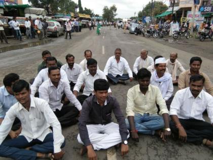 बीड : परळी - बीड मार्गावर तेलगाव येथे व गेवराई - बीड या महामार्गावर पाडळसिंगि येथे शेतक-यांचा रास्ता रोको सुरु.