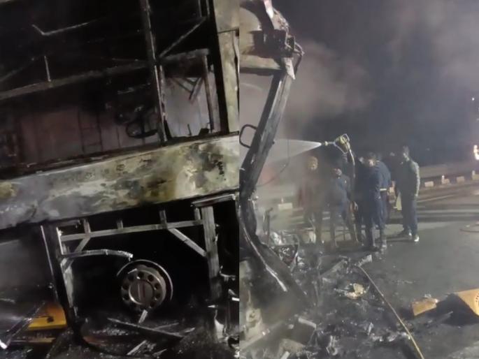 समृद्धी महामार्गावर ट्रकला धडकल्यानंतर ट्रॅव्हल्सला भीषण आग; एका प्रवाशाचा अंत, ३१ थोडक्यात बचावले
