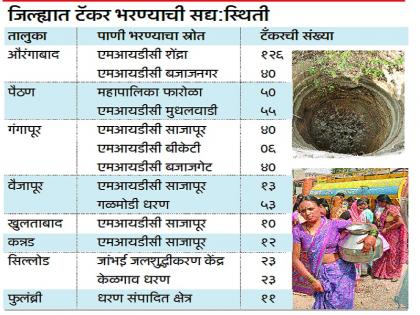 औरंगाबाद : यंदा जिल्ह्यात तीव्र पाणीटंचाई आहे. प्रशासनाने अधिग्रहित केलेल्या अनेक विहिरींनी तळ गाठला आहे. सरासरीपेक्षा कमी पाऊस झाल्यामुळे बहुतांशी प्रकल्प कोरडेच आहेत. दिवसेंदिवस टँकरची मागणी वाढत आहे. आजघडीला ९३४ टँकरद्वारे पाणीपुरवठा केला जात असून, उपलब्ध पाण्याचे स्रोत कमी पडत आहेत. त्यामुळे यापुढे टँकरची मदार ‘एमआयडीसी’च्या पाण्यावरच अवलंबून राहाणार आहे.