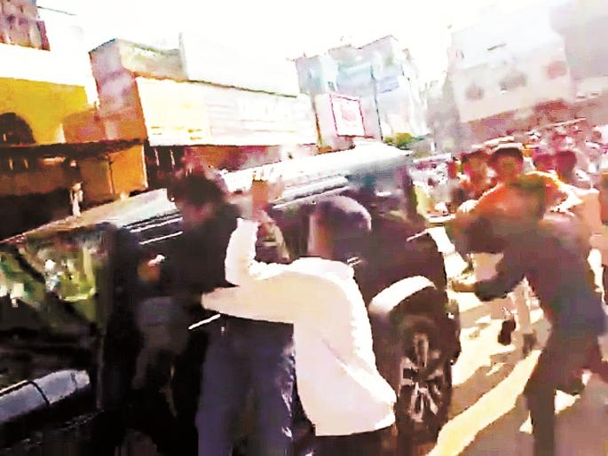 -जमावाने एकमेकांना शिवीगाळ सुरू केल्याने तणाव वाढला. जमाव पोलिसांच्या हाताबाहेर गेला. एकमेकांवर धावून जात मारहाण सुरू झाली. काही व्यापाऱ्यांनी तत्काळ दुकानांचे शटर बंद केले.